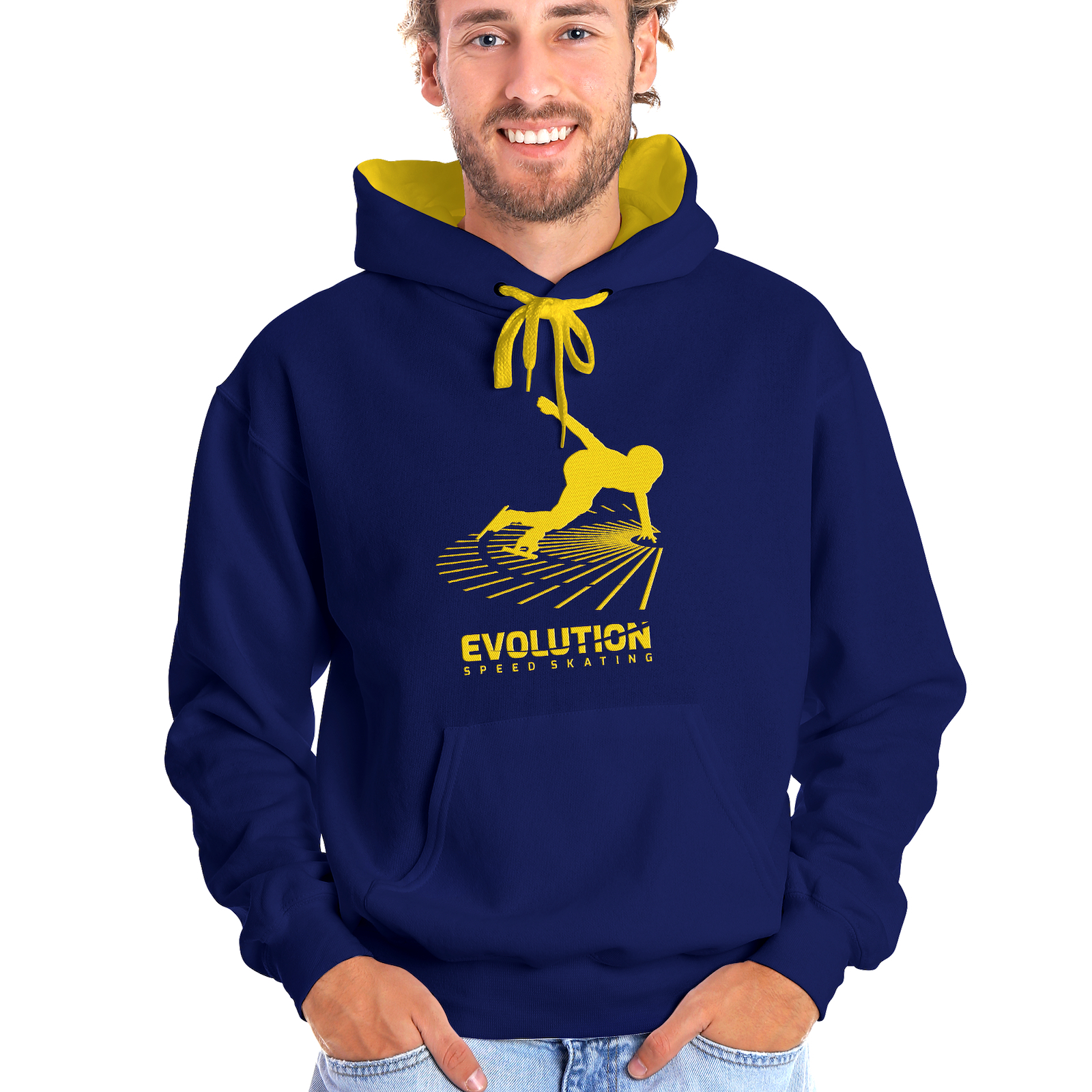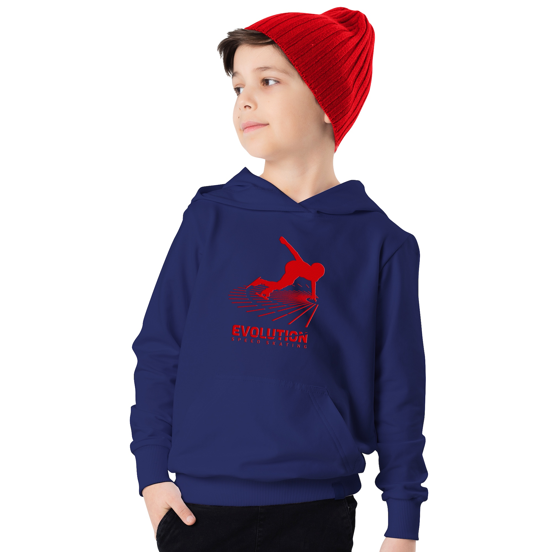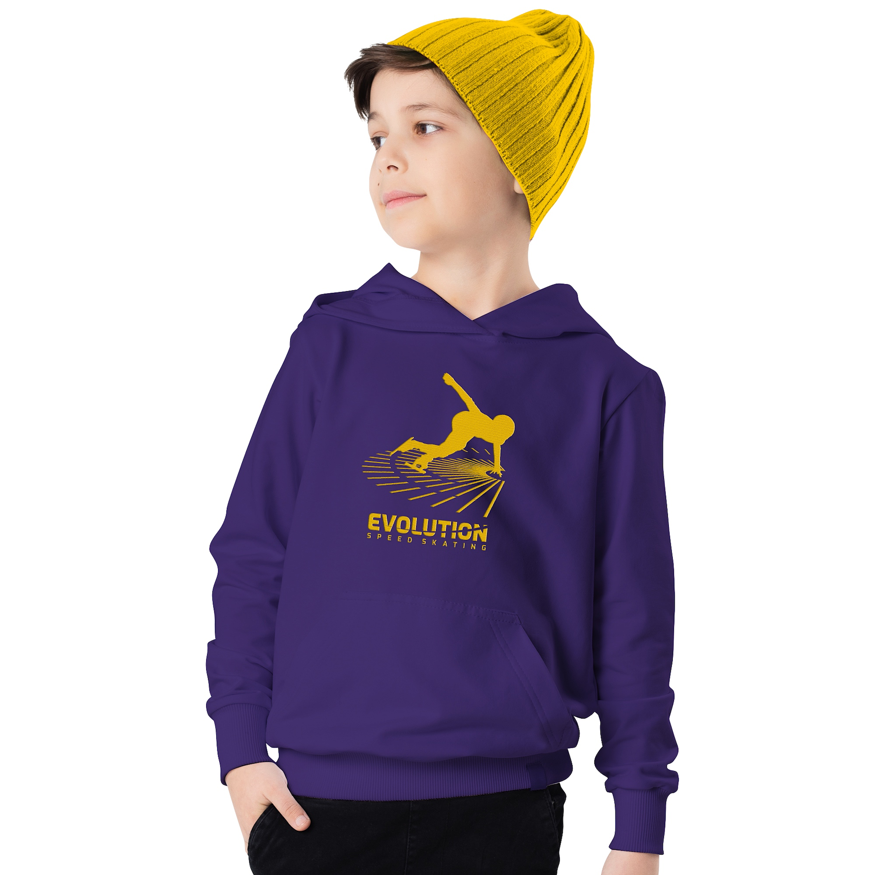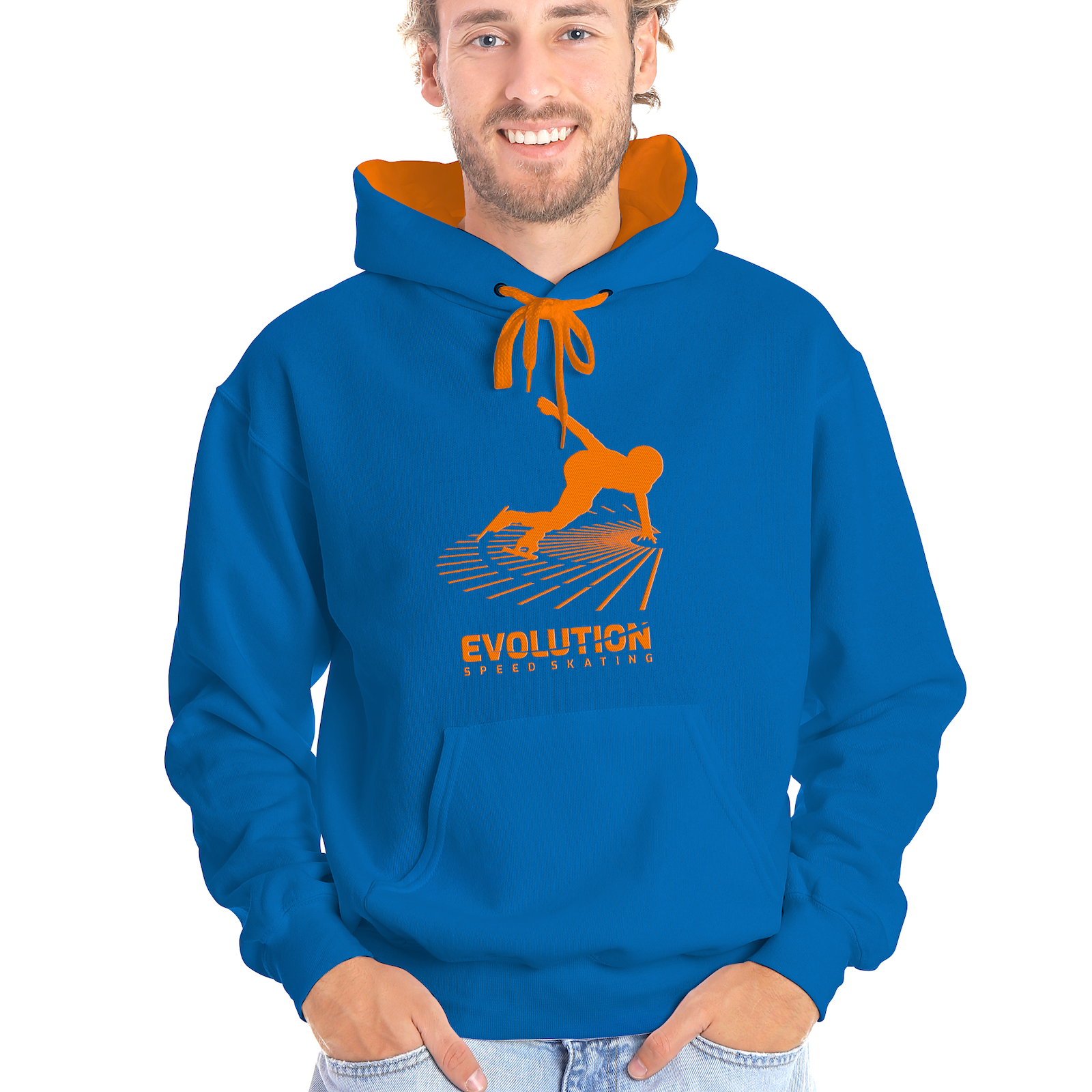 Relatively thick, comfortable hooded sweater with the Evolution Speed Skating logo in special color combinations.
